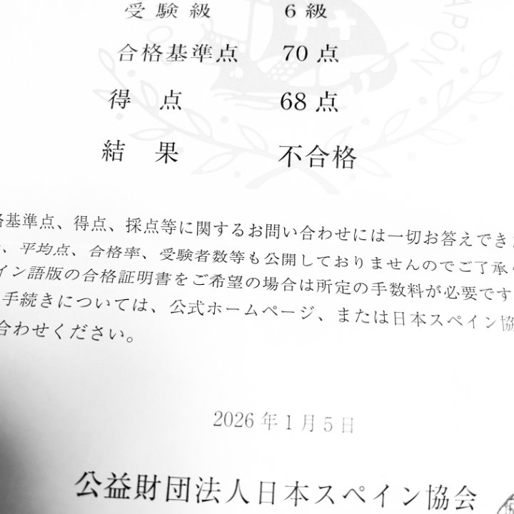 スペイン語検定6級合否結果